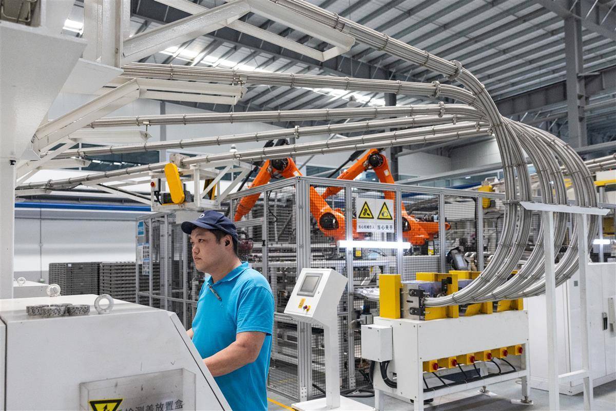 厦门保沣实业(湖北)有限公司生产车间,工人正在调试设备。(湖北日报全媒记者 倪娜 摄)
